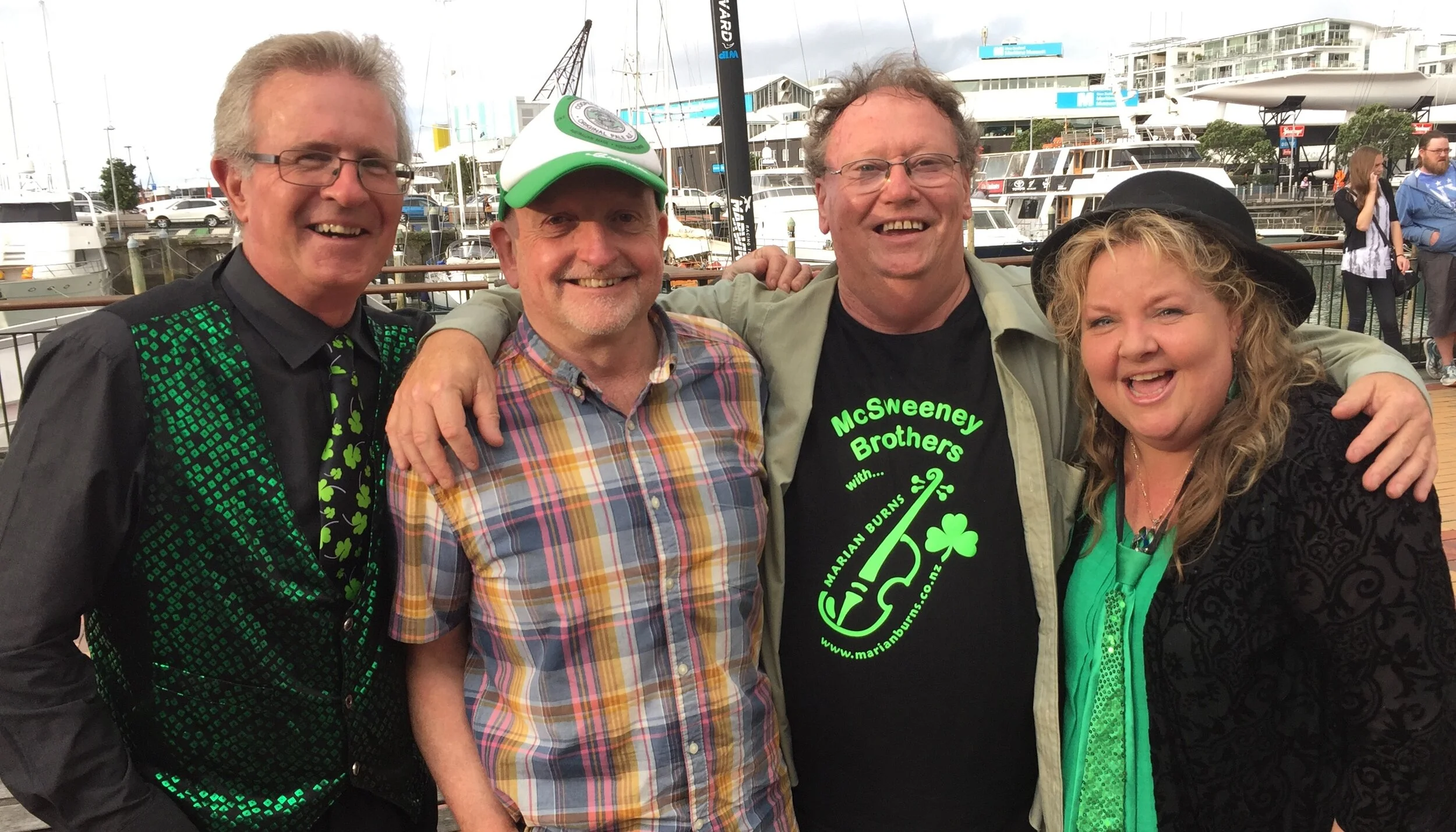 In 1997, they were joined by NZ’s Top Country Fiddle Player, Marian Burns, also winner of the Viewers’ Final in TV One’s Showcase 1997. The McSweeney Brothers then went on to play at ‘The Colleen of the Year’ function, various St Patrick’s Day functions, The Immigrant Hotel and both the Pre & Post Dinners of The Riverdance Show throughout its season in Auckland. This has been supplemented by a wide number of outside appearances, ranging from The Mud Brick Café on Waiheke Island to The Grace Hill Vineyard in Kumeu Auckland.