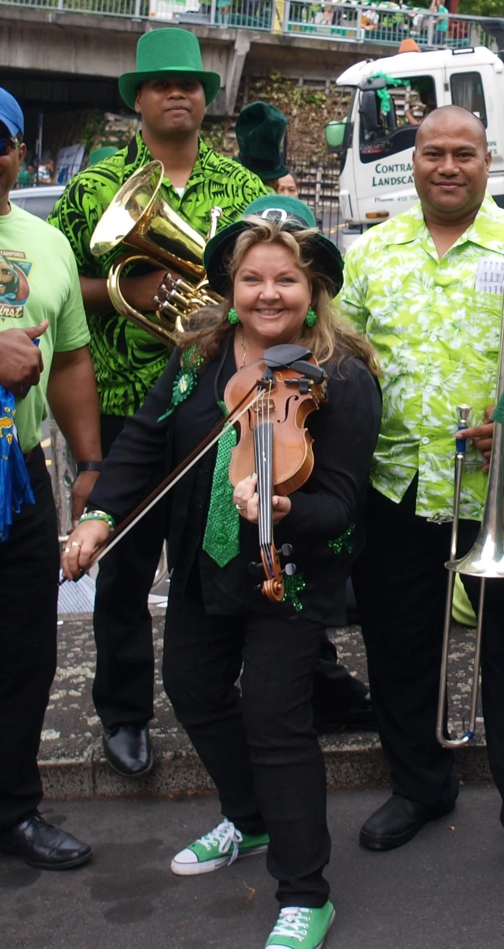 Sky City (St Patrick’s week, 6 years), Jazz and Blues Festival (5 years), Asian Food Festival (3 years), Good Morning Breakfast Show (Mary Lambie, T.V. One), Tongan Tour (December 2003). Completing ‘Landmark’ / Airplay on Jim Sutton’s ‘Nostalgia’ on 1ZB. Many St Patrick’s Day Parades and performances in Aotea Square and the Viaduct Basin. After match functions for the Riverdance performances. ASB Lounge, Eden Park before and after matches against Ireland, Australia and England. The annual Ambury Park Festival and The Waipu Celtic Music Festival 2009 and 2016.